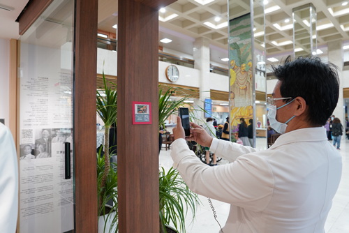 左圖:何宗融副院長用餐前先掃QR CODE二維碼,用完餐才能專心的回饋用餐心得。(圖/陳炳宏攝)