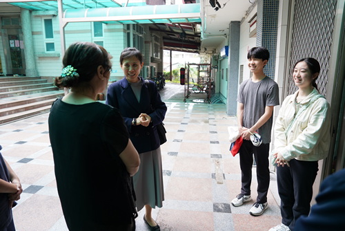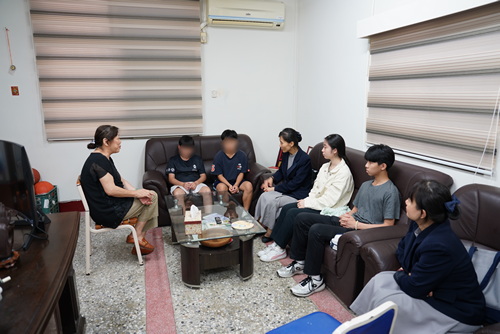 左圖:禪光育幼院執行長許淑媛(左二)與教保員翁子歡、社工師楊東逸親自出來迎接劉曉諭主任與二名慈科大學生。