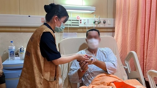 近年到花蓮慈院血液腫瘤科就診,菲律賓眼科中心眼科醫師蔡超勇表示,從醫師身分轉變成病患的過程中,獲益良多;當醫師雖然知道如何治療病患,卻無法有「感同身受」的同理心,直到遇見李啟誠主任、黃威翰醫師與護理師的細心照護,以及醫療志工每天膚慰,才有特別溫馨的感受,也相信病患在這樣的環境中一定會更快康復。蔡醫師也把在花蓮慈院這些體驗帶回菲律賓眼科中心,他說,加上每天透過大愛臺看上人開示,心理就不再有雜念。