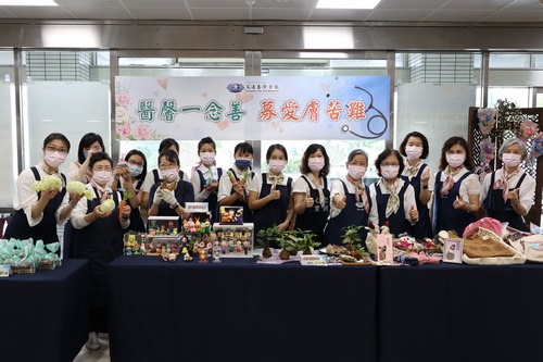 4月18日,醫院有一場先生娘發起義賣活動,照片中的先生娘每個人穿白上衣、圍裙、繫領巾,臉帶微笑,完全看不出她們家裡也有災損,展現的是「最美的笑容」,顏師姊說,4月11日餐敘是早在3月就約好,那知4月3日會有大地震,家裡雖受災但餐會照常,一聽到要舉行義賣,二十多人滿腔熱血全出動,從籌備到活動不到五天,還用三天做出手工餅、苔球盆栽、手作娃娃義賣,這就是「醫馨一念善,募愛膚苦難」,義賣時更是秒殺賣光光。