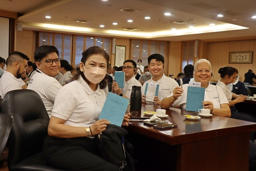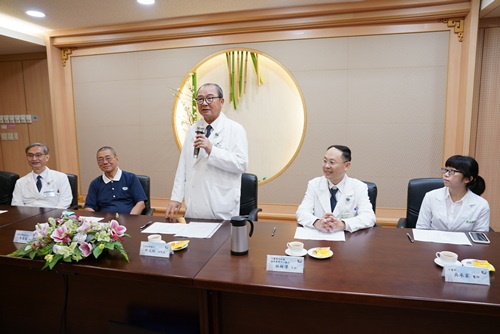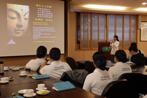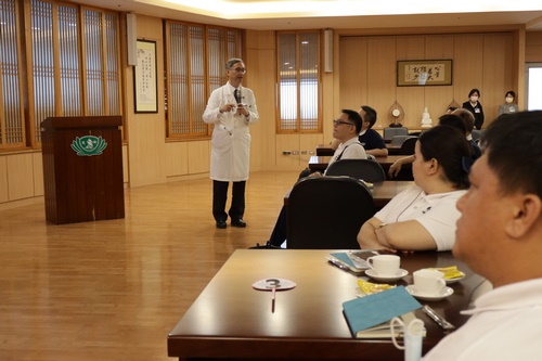 為了歡迎菲律賓的家人,花蓮慈院副院長許文林、國際醫學中心主任李啟誠、顧問林經偉中醫師等多人一早已在和氣會議室等候,這次交流目的除分享花蓮慈院醫療特色、中西醫合療之外、志工室主任顏靜曦師姊也以「最美的笑容」分享醫療志工的故事,希望能為菲律賓眼科中心帶來更多醫療人文想像。