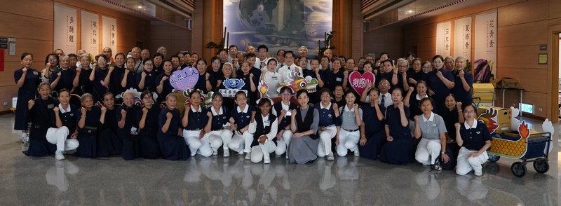 六月七日,適逢花蓮慈院慈誠懿德聯誼會,八十六位來自宜蘭區及花蓮區的慈誠懿德會師兄師姊以及志工室常住志工齊聚協力講堂,高喊「萬眾一心、評鑑高中」,在端午節前,為全院同仁送上最溫暖的祝福。