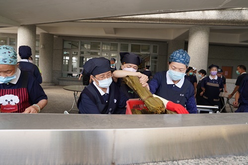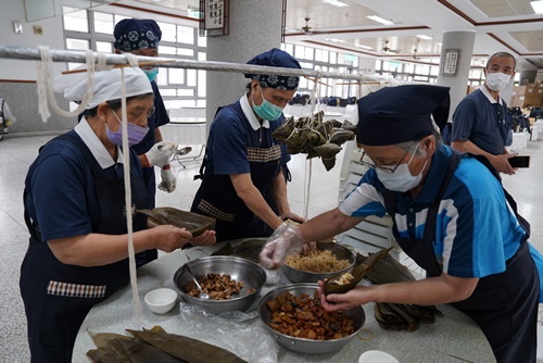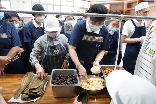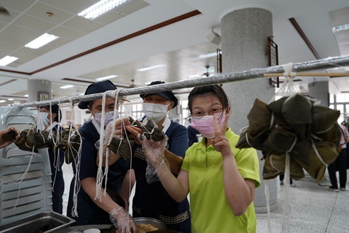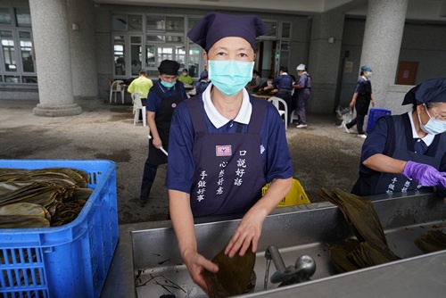 圖:五月十八日慈濟宜蘭志工一早來花蓮慈院同心圓營隊餐廳包粽,在端午節前,為全院同仁送上最溫暖的祝福。(圖/陳炳宏)