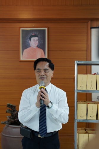 右圖:擔任懿德爸爸多年,林敏隆師兄(右)表示,平常都會定期到花蓮慈院關懷幸福的醫護同仁,把他們當家人一樣照顧。(圖/陳炳宏)