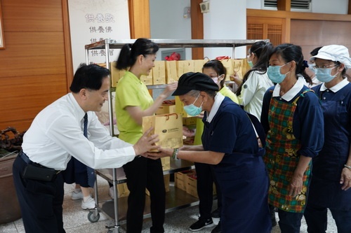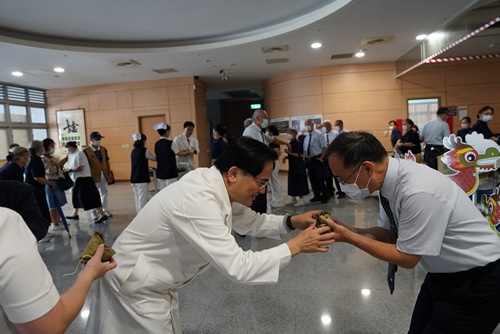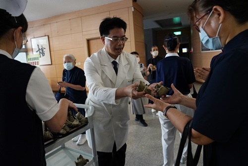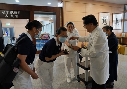 右圖:何宗融副院長也出席致贈懿德爸媽素粽,祝福端節平安快樂。(圖/陳炳宏)