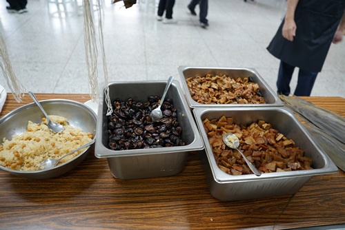 圖:素粽食材包括包括糯米、雪蓮子、滷香菇、素茶鵝和杏鮑菇。(圖/陳炳宏)