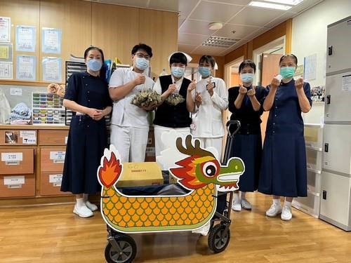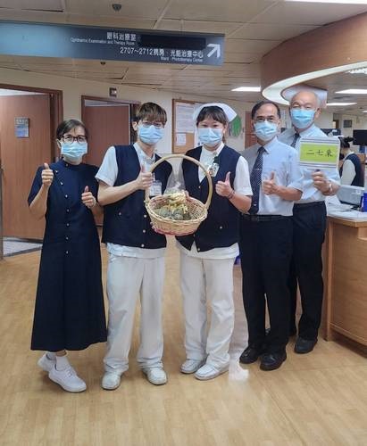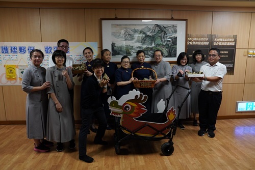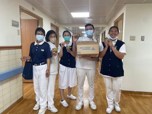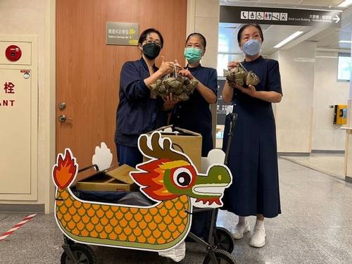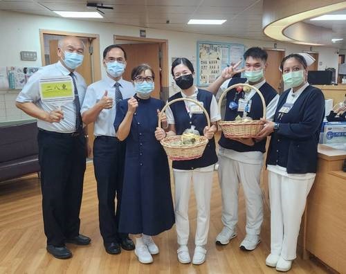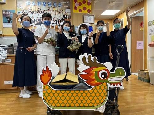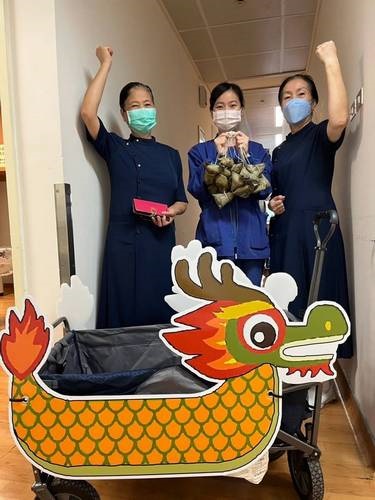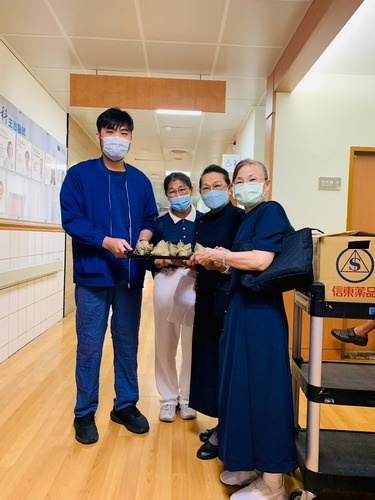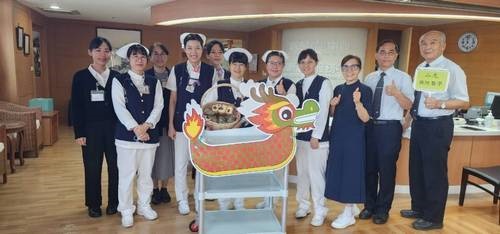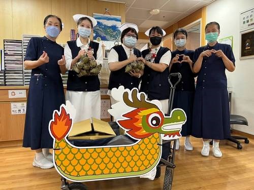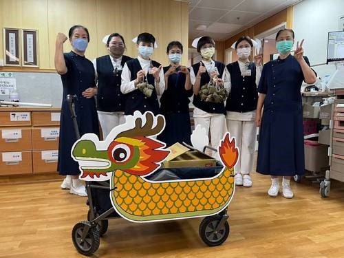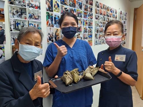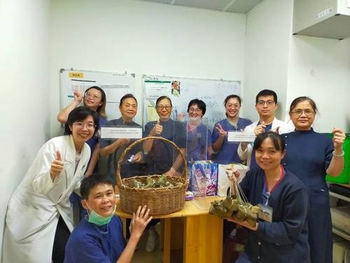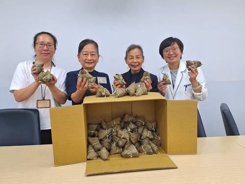 護理部主任鍾惠君表示,端午節快到了,全院都用心在準備評鑑,感恩懿德爸媽每年都準備應景的粽子,護理團隊與各單位同仁齊心準備評鑑,一定可以讓花蓮慈院高分通過。