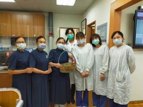 儘管腰痛仍綁著護具,堅持到花蓮慈院送粽子的陳素鳳師姊,今年八十五歲,關懷兒科護兒團隊已近三十年,她說,護理師幸福(辛苦)都看在眼裡,她早把團隊當家人照顧,每年端午節也會買蘋果來慰勞。