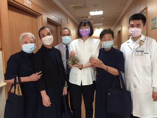 右圖:第一次參與花蓮慈院包粽的何彩屏師姊(左二),她很感恩腎臟科賴宇軒醫師的治療,讓她的遺傳性腎病得以獲控制。(圖/陳炳宏)