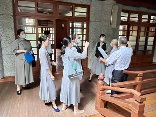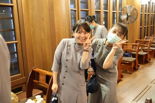 6日早上7時20分,參加主管共識營的學員在花蓮慈院大廳集合,由林欣榮院長及副院長陳培榕、吳彬安、陳星助、何宗融帶領學員、營隊工作同仁搭車前往靜思精舍。今年的營隊主題是「慈悲醫療、莫忘初心、智慧醫療、永續發展」,由牙醫部特殊需求者口腔醫學科主任李彝邦擔任學員長。