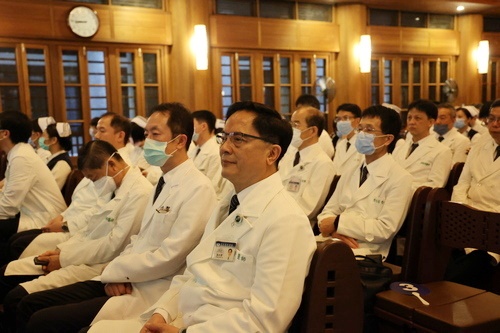 一開場,德瑋師父代表精舍師父歡迎同仁「回家」,並分享他上週參加法脈宗門營的心得,看到各家慈濟醫院醫護同仁為病人、醫病、權益作最大努力,用心對病人的照護與醫學研究,都是利益眾生的事。林院長帶領醫療團隊,用高科技與愛守護病人的健康、生命,在花東付出就是在行菩薩道。