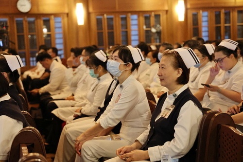 林俊龍執行長以「慈悲醫療,莫忘初心」為題表示,上人成立佛教克難慈濟功德會,是為鄉親、為地球傳遞關懷與愛。1972年起,在仁愛街開始義診,上人因發現義診是不夠的,需要有一家醫院,所以在花蓮蓋一家現代化、不收保證金的醫院,這就是醫療志業的濫觴,從慈善走入醫療,現在已經遍布全臺灣八家醫院與一家診所。因為護理師來源欠缺,上人成立護專,就是後來的慈濟科技大學,後又興建慈濟醫學院,就是現在的慈濟大學,現在兩校合併了,這是慈濟教育志業一環。