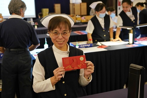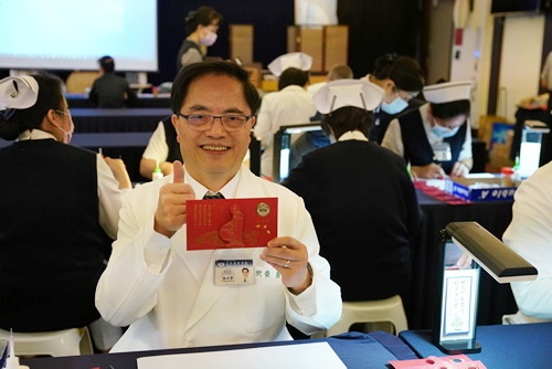 右圖:護理部呂基燕副主任也做好福慧紅包。