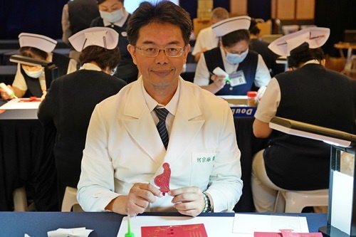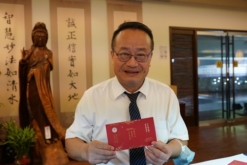 右圖:何宗融副院長,手持宇宙大覺者,親自參與福慧紅包製作。