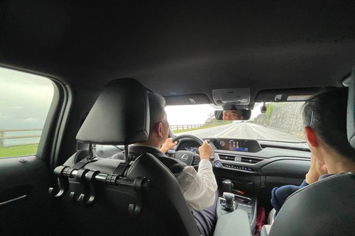 左圖、中圖:5日一早,復健部主任梁忠詔、人力資源室主任劉曉諭開著車迎著毛毛細雨前往臺東長濱鄉衛生所。