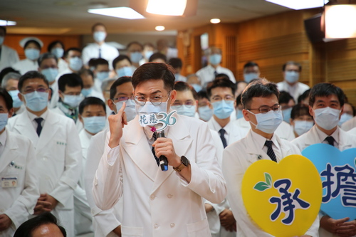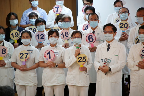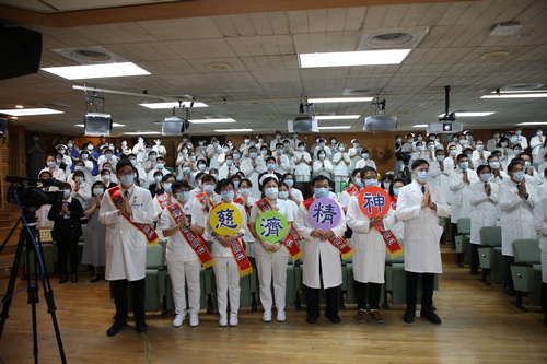 院長室主管也全部出席志工早會,除陳宗鷹副院長在協力講堂陪伴連線參加的同仁外,其餘副院長王志鴻、許文林、陳培榕、吳彬安、羅慶徽、徐中平、何宗融、黃志揚、陳星助及醫務祕書李毅等在二期講堂。