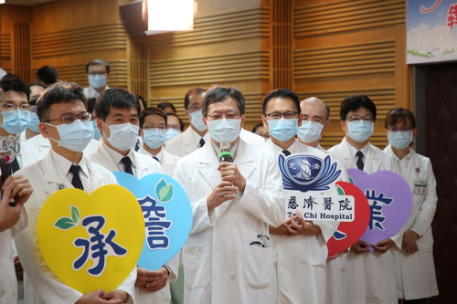 圖說(左):院長林欣榮感恩 上人在三十六年前本著救人的一念心,創立守護生命、守護健康、守護愛的花蓮慈濟醫院。