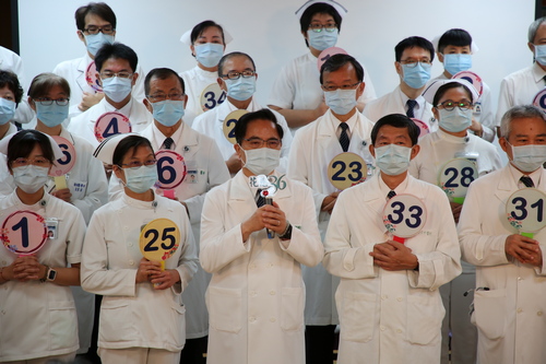 許晉譯(第三排左起)、陳顥文、王柏凱、高聖倫、黃威翰、張群明、黃妙慧、陳逸婷等多位醫師合照。