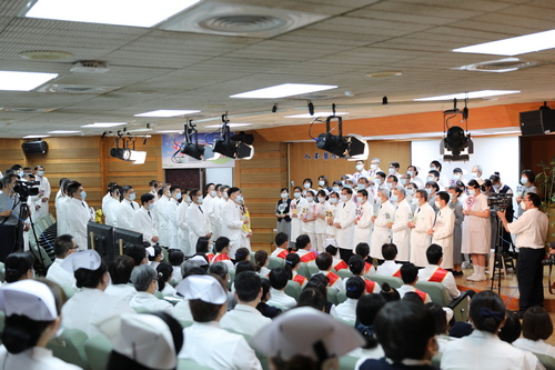 張宇勳主任指出,當初剛進花蓮慈院,醫師非常少,也都仰賴台大醫師支援,同學們也都有每三天值一次班的經驗,甚至他太太還曾說,兒子要看父親還需要掛號,不過現在都已獲得改善,在林院長帶領下,全院超過四百五十位醫師,其中已有一百八十七位是慈濟大學醫學系畢業生,學長、學姊、學弟、學妹一起留在花蓮,投入守護花東行列,也感恩 上人與全球慈濟人支持。