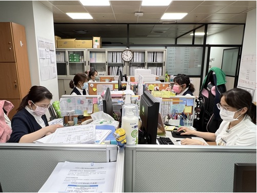 圖:總是要忙到晚上,諮詢電話少了,感控團隊才能稍稍喘息,靜心下來做報表、核對、檢視、交流、討論……等。(游繡華攝)