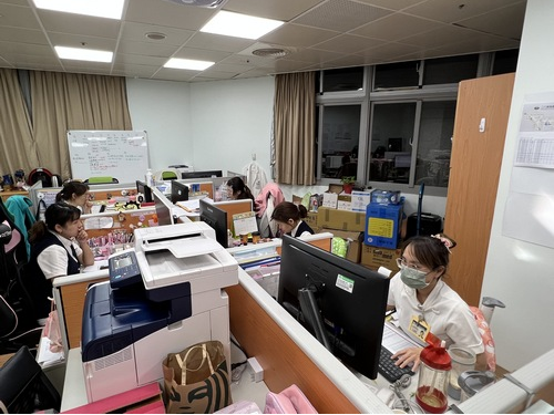 談起夥伴張淑萍,江惠莉組長指出,在醫院疫情最危急的時候,所有的感控同仁忙進忙出不得一刻喘息的時候,特別最前面的兩個星期,根本沒有時間好好吃飯,但依然沒有餓著,「這都要感謝凡事使命必達的淑萍,儘管她已經夠忙了,還是會張羅好大家的餐飲,她會把食物送到妳面前,然後說『這是妳的,趕快吃』」,忙歸忙,辦公室裡就是這麼溫馨。