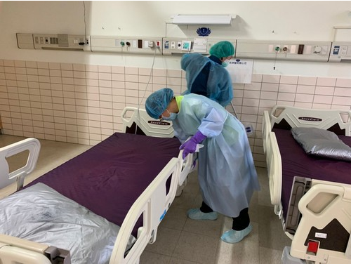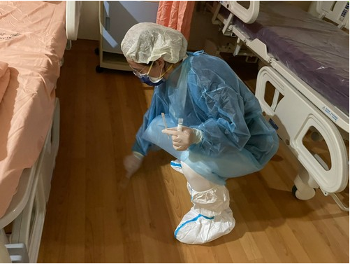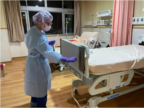 圖:染疫病房搬遷後,感控護理師除了環境採檢之外,也會指導、協助環境整理,讓外包清潔阿姨感受到安全有靠山。(江惠莉提供)