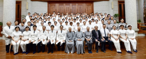 花蓮慈濟醫院10月6日在靜思精舍舉辦主管合心共識營。上人在開示時感恩醫院同仁對病人的付出,也期許同仁在歲末盤點生命的價值。一天的課程除有熟悉的林俊龍執行長、副總執行長林靜憪師姊的期許勉勵,還有德淵師父開示「無量義融法髓」,以及中央健保署署長石崇良、長庚醫療體系行政中心總執行長潘延健、慈濟基金會副執行長劉效成、全球志工總督導黃思賢師兄等人專題分享。