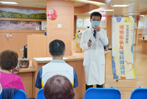 花蓮慈濟醫院頭頸癌團隊與陽光社會福利基金會東區服務中心9月20日上午在大愛樓5樓舉辦頭頸癌病友家庭聯誼會,除了陳培榕副院長、周昱甫主任等照護團隊為病友加油打氣,「資深病友」夏女士與張先生示範半流質及全流質食物作法與食譜,營養師陳珮瑄也立即回饋並建議可以調整那些食材,吃得更健康。
