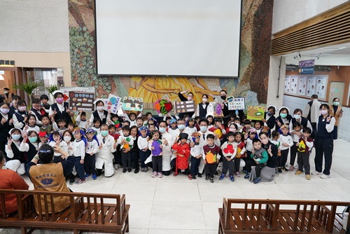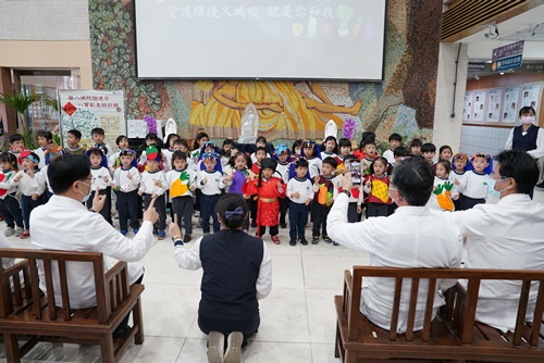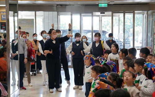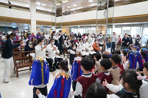 圖:大愛幼兒園帶來可愛的《蔬果好健康》與《龍龍的新年》,林院長與副院長們也跟著起手足舞蹈。(陳炳宏攝)