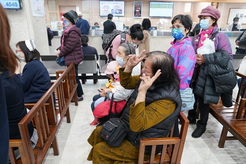 右圖:林院長祝福每位到院鄉親「臘八節平安吉祥!」。(陳炳宏攝)
