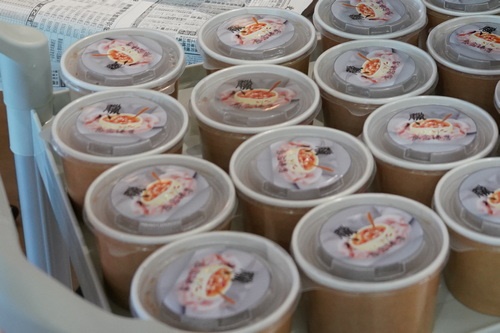 右圖:「慈悲行善臘八粥」已就緒,準備與民眾結緣。(陳炳宏攝)