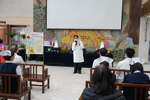 圖:林欣榮院長跟大家講臘八節典故,分享佛陀成道的故事與喜悅。(陳炳宏攝)