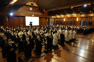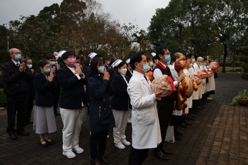 農曆新年即將到來,2月6日清晨,花蓮、臺東的醫療志業同仁,在花蓮慈濟醫院林欣榮院長、玉里慈濟醫院陳岩碧院長、關山慈濟醫院潘永謙院長帶領下,前往靜思精舍,與慈善、教育、人文志業等主管同仁,一起向證嚴上人辭歲拜年。林欣榮院長將花蓮慈院去年在醫療及人文的豐碩成果獻給 上人,並與院內在二期講堂同步連線辭歲拜年一共超過200位同仁,一齊恭祝 上人法體安康、精舍師父與全球慈濟人,新年快樂。