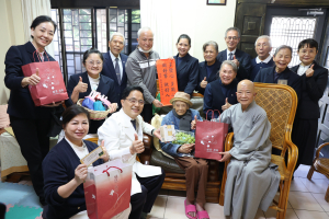 一月六日上午,在靜思精舍德憬師父、德寰師父、德林師父、德淯師父及德悰師父的陪伴下,花蓮慈濟醫院林欣榮院長、吳彬安副院長、血液透析中心主任王智賢、國際醫學中心副主任鄭順賢、慢性腎臟病防治中心主任林于立,與護理部鍾惠君主任、呂基燕副主任、王琬詳副主任、葉秀真副主任、蘇芬蘭督導、彭淑敏督導以及護理同仁,跟著慈濟志工的腳步,走遍花蓮大街小巷,探望年邁資深的慈濟志工,並為老菩薩們奉上歲末祝福。