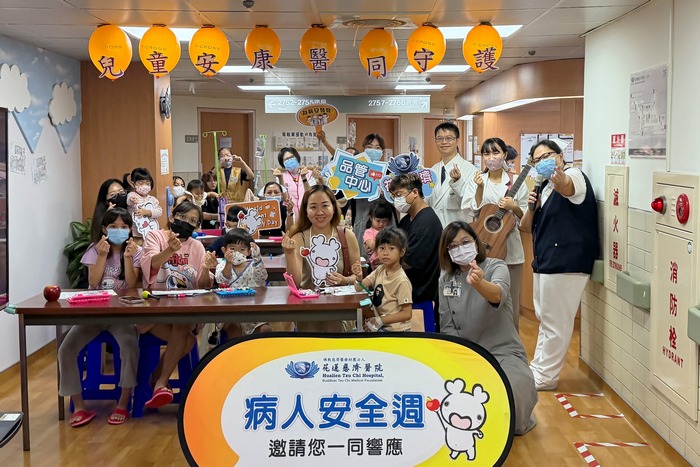 花蓮慈濟醫院於10月15日上午在二七西病房舉辦病人安全週「兒童安康,醫同守護」繪畫活動,由品管中心、兒科病房及小兒部共同策畫,結合音樂治療與藝術創作,醫護人員以繪畫與音樂為橋梁,將病安教育轉化為孩子能理解、能實踐的具體行動,讓「安全」成為生活的一部分,實踐「醫同守護」的精神,讓愛與安全在病房中持續發芽。