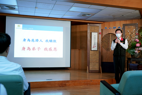 圖說:花蓮縣衛生局朱家祥局長,二十四日在志工早會表示,「身為一個慈濟人,我驕傲;身為上人弟子,我獻上無限的感恩」,感恩上人及全球慈濟人。