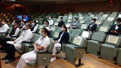 花蓮慈濟醫院七月八日上午十一點在靜思堂舉辦感恩會,由醫務秘書李毅、醫事室副主任張菁育等人代表,向參與疫苗施打守護社區健康的慈濟基金會總務處同仁、社區志工,以及院內各單位同仁,致上最高敬意。自二○二一年八月十二日啟動的花蓮靜思堂COVID-19疫苗施打站,於八日上午完成階段性任務,自七月十一日起,疫苗門診將移至慈院大愛樓五樓,提供服務。