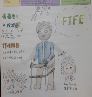 三月間,一對結婚超過六十年的夫妻,先生因為心臟衰竭住在花蓮慈濟醫院心臟內科病房治療,太太因為車禍右手右腳骨折在家休養,兩人必須分居兩地。護理團隊發現病人一直對於不能陪伴在妻子身邊很自責,積極照顧他的身心,不僅協助他復健,適時鼓勵他,特別是陪伴他閱讀太太寫來的信,這過程也讓護理同仁感受到身體的病痛需要良藥來醫治,心病就需要靠心藥來膚慰。