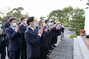 二月二十二日清晨,三十九位慈濟醫療志業主管在林俊龍執行長及花蓮慈濟醫院林欣榮院長的帶領下