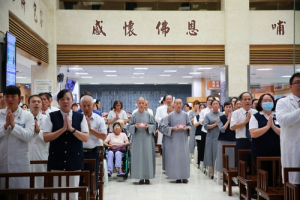 農曆七月是佛教的吉祥月,同時也是孝親月,花蓮慈濟醫院在八月二十四日下午舉辦「七月吉祥孝親祈福會」,由精舍師父帶領院長林欣榮、副院長許文林、王立信、主秘陳星助、解剖病理科主任許永祥、護理部主任章淑娟、副主任呂基燕、督導王琬詳、方淑華等等科室主管,眾人共聚善念,發好心、立好願,並分成三條動線,走入病房,將感恩與祝福送給病人與家屬,一起歡喜迎接七月吉祥月。
