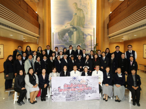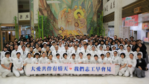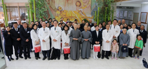 二十九日上午,七點五十分,在花蓮慈濟醫院大廳佛陀問病圖前,包含林欣榮院長、王立信副院長、吳彬安副院長、李毅醫務秘書以及護理部章淑娟主任與主管同仁,聚集了超過兩百位同仁與志工菩薩,準時參與大廳朝會聆聽《人間菩提》上人開示,並見證「大廳朝會」的歷史。林欣榮院長有感而發地說:「大廳朝會陪伴同仁見證花蓮慈院三十二年的歷史,是醫院同仁薰法香的起點,也是慧命資量的來源,未來就讓我們相約志工早會見!」。