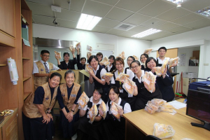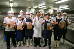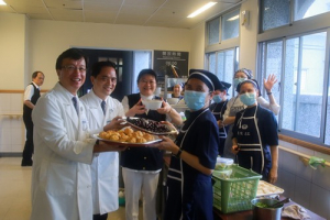 距離正式評鑑的日子越來越近,花蓮慈濟醫院更是卯足了勁,做足準備。除了花蓮慈院常住志工以及醫療志工,天天準備祝福擔仔麵與點心外,還有貼心的總務室供膳組,在評鑑期間將配合評鑑準備各式餐點,為正在醫療、評鑑兩頭忙的同仁們充電打氣。二十日一早,林欣榮院長、企劃室以及人文室特地到同心圓餐廳,送上大愛感恩科技的護腕、護膝組,表達對供膳組同仁的感恩。