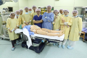 「當孕產婦的生命出現危急情況時,醫療團隊只能爭取時間,緊急搶救孕婦和腹中的胎兒。」花蓮慈濟醫院婦產部副主任高聖博說道。五月三日,花蓮慈濟醫院教學部在母親節前夕,舉辦醫療職場擬真情境演練,模擬為ㄧ位有緊急狀況的臨盆產婦,進行剖腹產手術,由婦產部、麻醉科、助產人員及產科護理同仁,齊心守護生命當下,更要在母難時平安順利產下胎兒,守護小生命的健康。如此逼真的情境模擬教學,除了訓練醫護人員的醫療能力,還有團隊的突發反應,更考驗著團隊間的分工合作與默契。