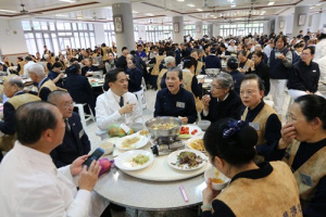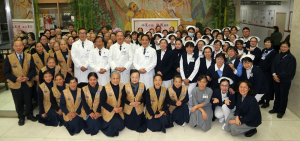走入花蓮慈濟醫院,迎面而來的醫療志工是一大特色,他們一年三百六十五天,天天守護醫院,透過親切問候、引導及膚慰,讓來院看診民眾安心,也為醫院同仁減輕工作負荷。為了感恩全年無休的志工們,十九日中午,花蓮慈濟醫院在同心圓餐廳舉辦「歲末感恩志工餐會」,邀請梯次醫療志工、慈誠懿德爸爸媽媽、標準化病人志工、骨髓關懷志工以及醫院常住志工等,超過四百多位志工菩薩參與,由醫院同仁為他們獻上最誠摯的感謝。
