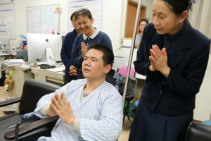 行動緩慢,雙手、雙腿僵硬,從輪椅到坐上車,這一個動作,對來自中國大陸上海市的吳曉冬來說,得費好大工夫。罹患巴金森氏症的吳曉冬,二月六日上午,帶著上海慈濟人的祝福,由母親許鈺明以及廖美珍、廖彗玲、楊淑瓊師姊三位上海寶山區的慈濟志工一路陪伴,終於抵達花蓮慈濟醫院展開醫療之行。