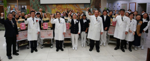 再過兩天,就要迎接二O一七年!時逢「新年頭、舊年尾」的感恩時節,二十八日下午,花蓮慈濟醫院各角落,充滿著迎接新年的歡喜氣氛。為感恩全院同仁一年來的辛勤付出與努力,林欣榮院長、副院長許文林、陳培榕、陳宗鷹、陳星助主任秘書以及護理部主任章淑娟等主管,走訪各醫療、護理、醫技、行政單位。歲末寒冬之際,親手為每位同仁獻上充滿祝福的溫馨下午茶。林欣榮院長代表感恩全院同仁在2016年的付出與努力,創造多項佳績,也期勉同仁攜手邁向幸福的2017年!