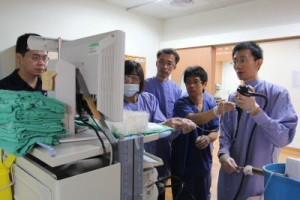 星期天(九月二十日)上午,沒有任何排程的花蓮慈濟醫院內科檢查室,腸胃內科主治醫師劉作財、洪睿勝兩人正在操作內視鏡,身邊圍著多位同科醫師。原來他們把握擅長內視鏡黏膜下剝離術的日本專家石井直樹(Naoki Ishii)醫師在花蓮的時間,學習新術式,希望日後能提供東部地區早期腸胃道癌症的病人一個先進的新治療選擇。