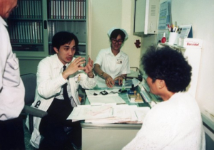 「從來的第一天起,就下定決心不走了……」在滿室的掌聲中,泌尿部主任郭漢崇從他到花蓮來的契機說起。一九八七年花蓮慈濟醫院泌尿科正式成立,輪調支援的其中一位年輕醫生,剛升為臺大醫院泌尿科主治醫師的郭漢崇,在支援一段時間後,決定把專業奉獻給花東民眾,一九八八年八月一日他來到慈濟醫院正式報到。