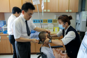 經過神經功能科團隊評估,來自中國大陸福建省福鼎市的鄭大耿,從八月四日開始進行藥物藥療,隨著劑量增加,全身不自覺顫抖,雙腳更是難以自己掌控的狀況,明顯改善許多;六日上午,神經功能團隊再次為鄭大耿安排腦波檢查,神經功能科主任陳新源與一般神經內科主任林聖皇也為鄭大耿再次進行動作評估。在服藥三天後,明顯感受到鄭大耿一天比一天進步,大耿感恩地說:「藥物治療讓他動作顫抖的狀況改善了四成。」