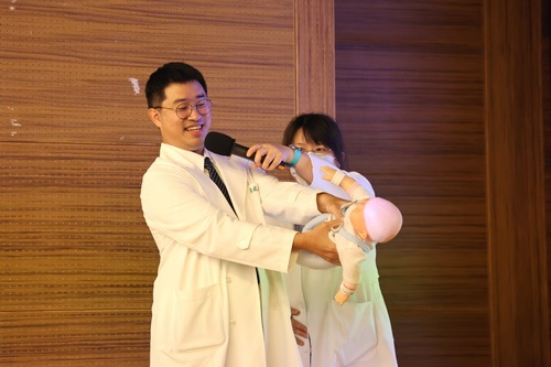 ▲小兒部周威志醫師介紹並示範新生兒及兒童基礎救命術